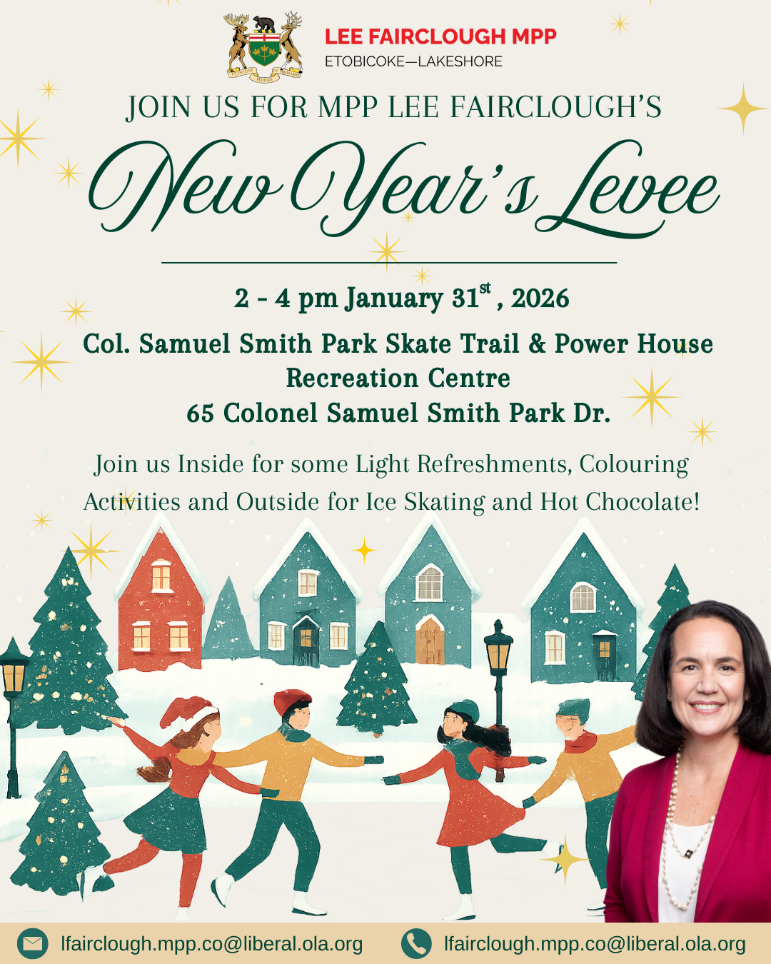 Phone: 416 259 2249 Email: lfairclough.mpp.co@liberal.ola.org Web: LeeFaircloughMPP.ca